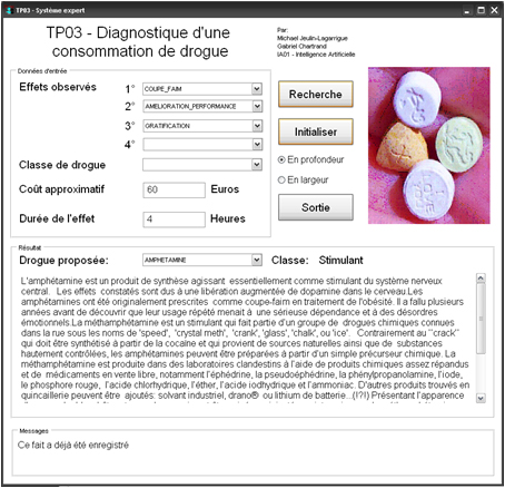 Key workds : Psychotropic, Expert System, Common LISP, LISP, 0+ Order, Functional Programmation, Drugs, Common Graphics Tool.